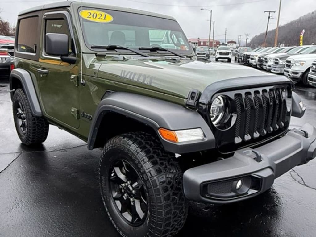 Ready to conquer any trail or city street, this 2021 Jeep Wrangler Willys in Danville, WV is your ticket to rugged capability and modern comfort. With only 34,882 miles, a fuel-efficient 4-cylinder 2.0L gasoline engine, and 4WD, this Jeep Wrangler blends legendary off-road performance with everyday drivability. The Willys trim adds aggressive styling and off-road-ready features, highlighted by the Off-Road Package that ensures superior traction, clearance, and confidence when the pavement ends. Inside, enjoy modern connectivity and convenience: Hands Free Bluetooth keeps calls and music seamless, while Android Auto integrates your favorite apps and navigation for stress-free driving. Cold mornings are no match for the Heated Steering Wheel, and Remote Start lets you warm up or cool down the cabin before you step in. Practical utility meets rugged design with durable interior surfaces and versatile cargo spaceâ"perfect for weekend adventures or daily errands. Located in Danville, WV, this Jeep Wrangler Willys is offered at the best price in the area, making it an unbeatable value for buyers seeking capability, style, and low mileage. Whether you're planning off-road excursions or commuting in comfort, this Jeep Wrangler delivers. Call or stop by to see why this 2021 Jeep Wrangler Willys with 4WD and a 2.0L engine is the smart choice for your next vehicleâ"don't miss out on the best-priced Jeep Wrangler available.